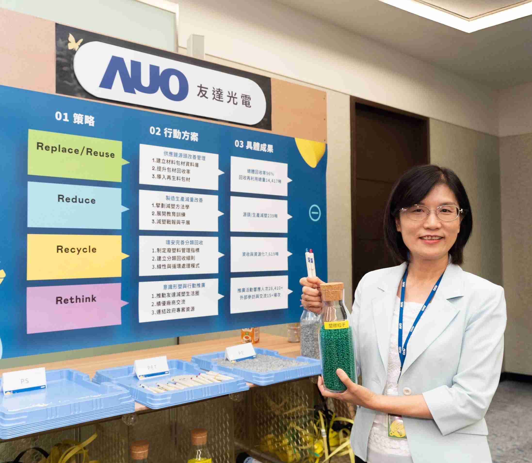 人生就是博投入减塑过程中,,从3R+1策略展开(Recycle循环回收; Reuse物尽其用; Reduce减少使用;Rethink反思),,并持续与多元产业伙伴合作,,,,邀请台湾默克、、、住华科技、、、、奇美实业、、明基材料、、、配客嘉、、、、统一企业、、、、洁安环保工程,,共七家厂商与人生就是博连手策划首届减塑生态圈联展,,,展示如何将废塑料循环再利用,,,,创新解决方案包括:塑料包材再生与循环使用、、、、再生塑料研发及应用、、、废塑料回收再生技术、、、减塑生活提案等,,,,藉此为产业伙伴搭建交流与共学平台,,激发更多创新解方。。。而人生就是博贯彻循环再生的作为,,,一年来已达成塑料再制量高达8.5之成果,,,,当中包含将厂内废弃物再制为实用物品,,,,如:以回收宝特瓶再制之循环折伞、、、工厂废塑料再制之垃圾袋,,,另亦扩展到包含废纸再制之卫生纸、、、修伐废木再制之农肥等,,,让重「塑」价值的理念落实,,,深植于每个人的日常。。。此次展示区规划也贯彻减塑减废精神,,,采用可重复使用展架、、、以数字显示代替一次性印刷输出物;也搭上AI潮流,,以AI生成影片与画作,,引导与会者思索减塑重要性;同时,,,,现场也展示以塑料废弃物为媒材再制而成的艺术服装,,,,体现人生就是博人「减塑即生活、、减塑即艺术」的精神。。